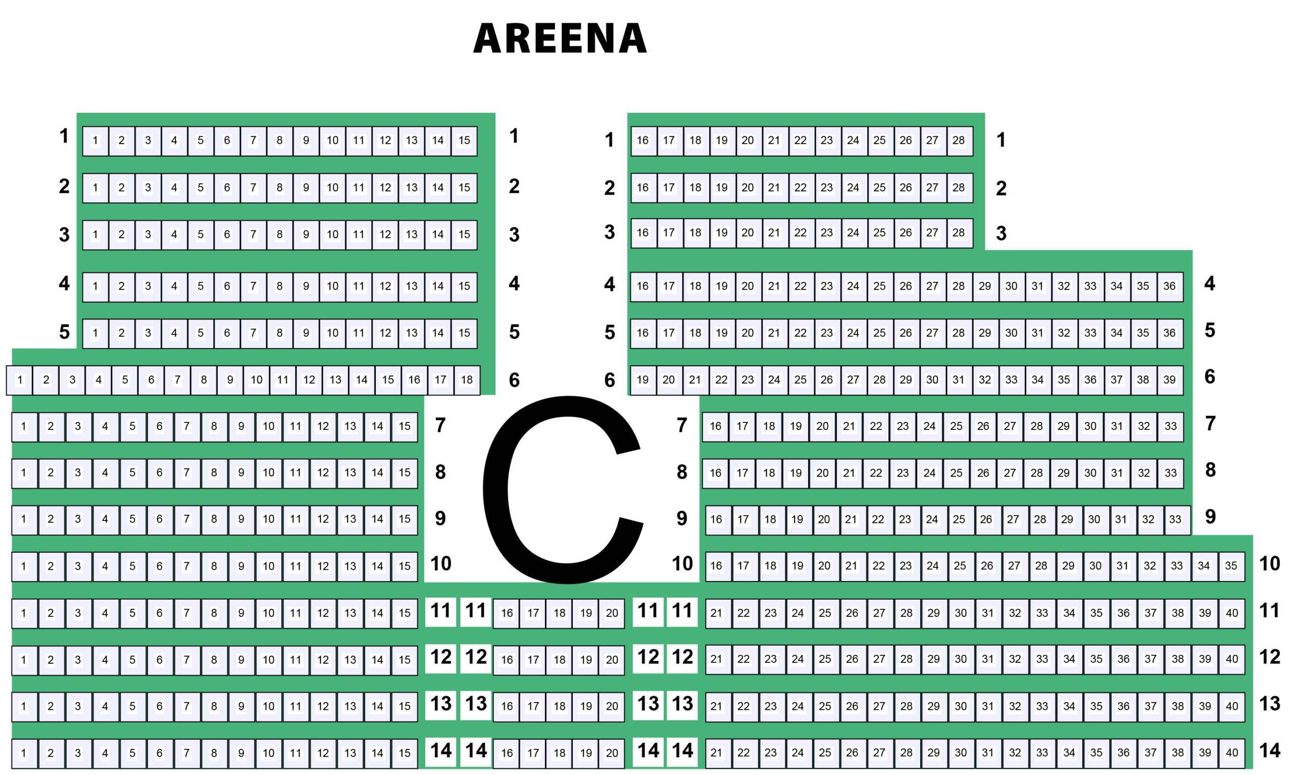 Varausjärjestelmässä on oma paikkanumerointi. PKS-Areenan rivi- ja istuinpaikkanumero näkyy lipussasi.