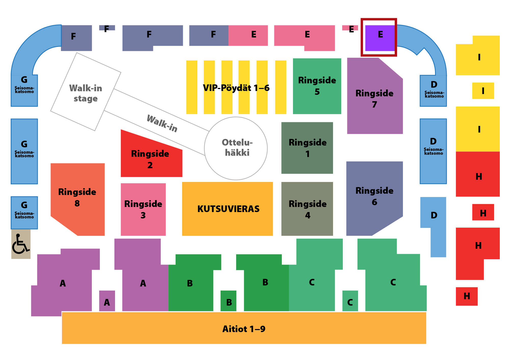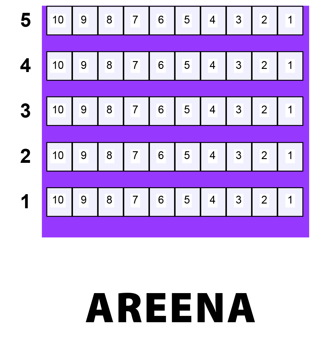 Varausjärjestelmässä on oma paikkanumerointi. PKS-Areenan rivi- ja istuinpaikkanumero näkyy lipussasi.
